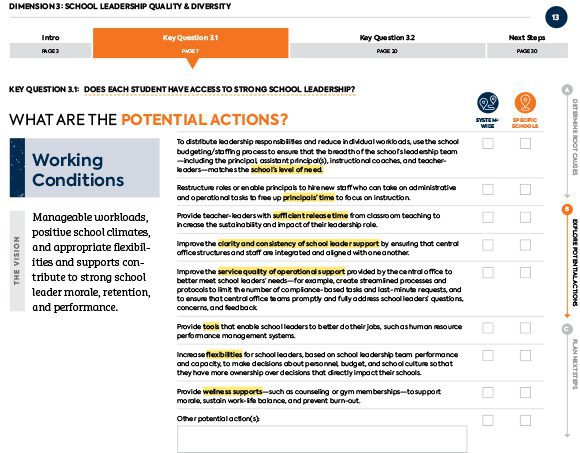 This interactive workbook provides a structure to help your team better understand what is causing challenges related to School Leadership Quality & Diversity and identify concrete next steps for improving the experiences that students have in school.